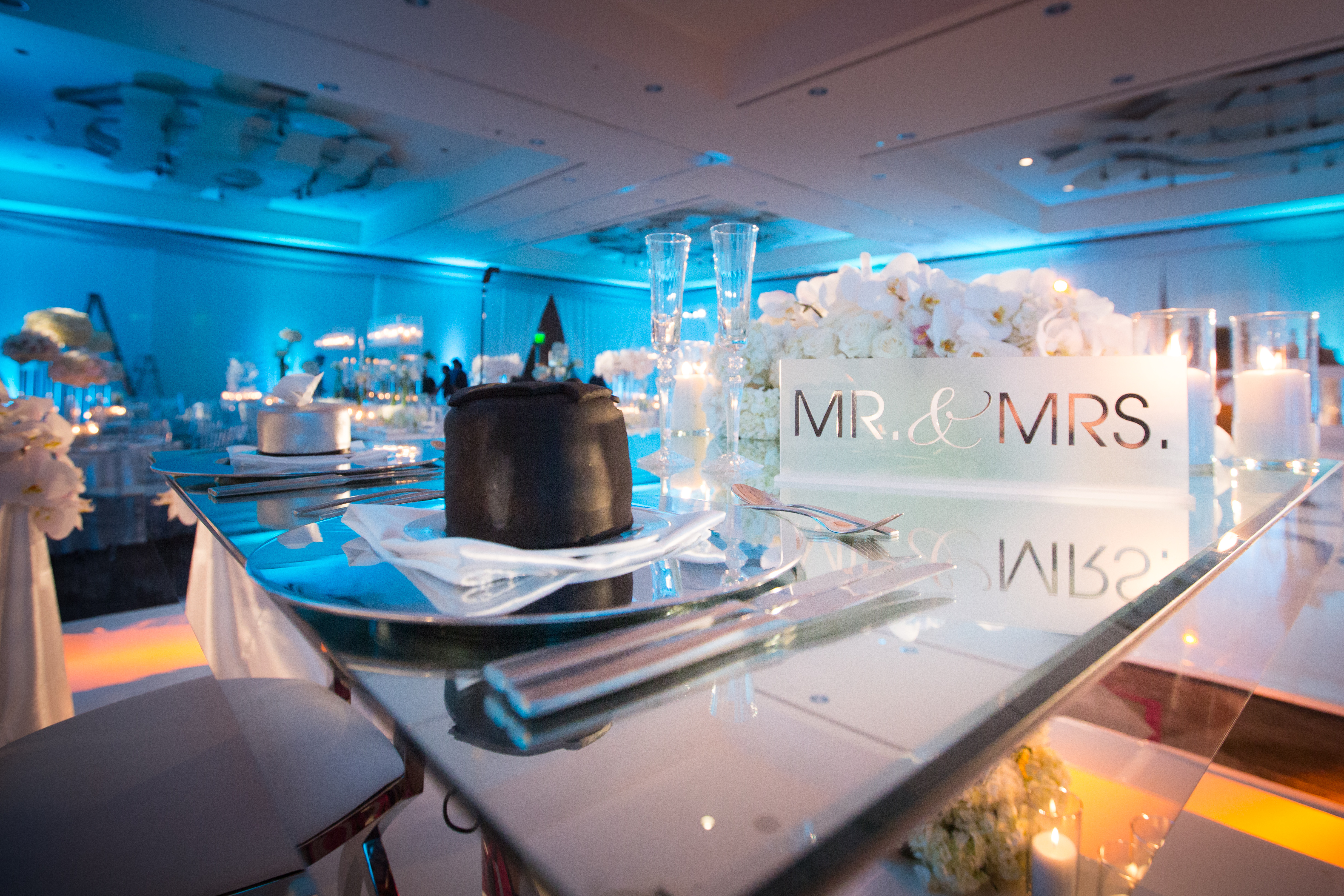 Acrylic and silver foil Mr. & Mrs. wedding sign.