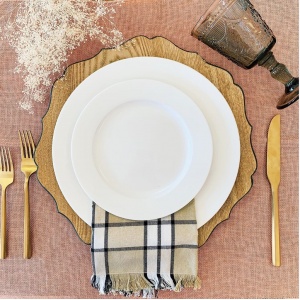 Whether your event is a small gathering, wedding, engagement, dinner party, bridal shower, or brunch our ruffled wood charger with it's rustic yet feminine ruffled edges is a budget-friendly way to beautify your tablesetting.
