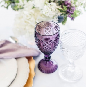 Our amethyst Colored Goblets are available for wedding and party rentals in Los Angeles County, Riverside County, San Bernadino County, Ventura County and County of Santa Barbara.